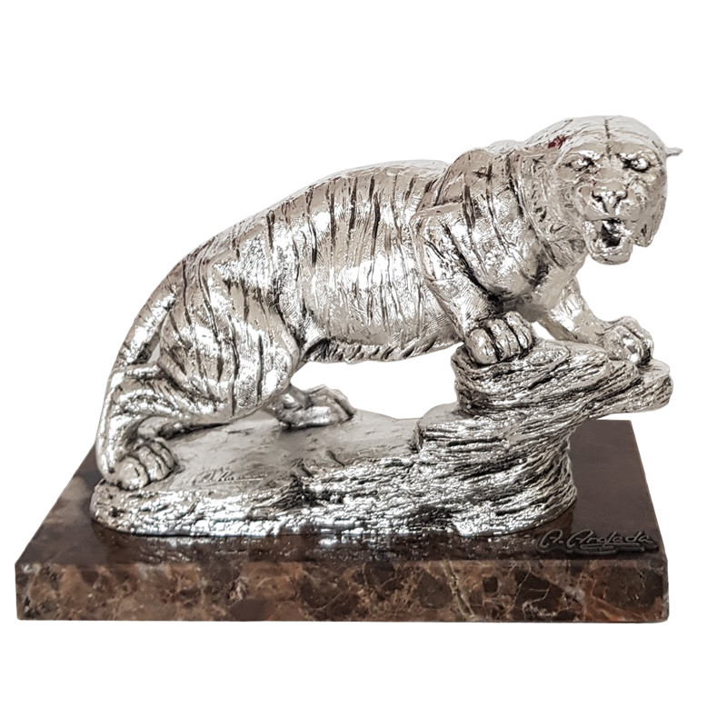Скульптура Anglada - виконана з глини, нагрітої до температури 1000 С і розписані скульптором вручну. Унікальна техніка нанесення фарби - патинування - надає виробам незвичайний бронзовий ефект.На кожному виробі кліше виробника і порядковий номер. Колекції випускаються обмеженим тиражем 4999 штук. Фігура виготовлена у високо художньому стилі, підставка з мармуру Emperador.