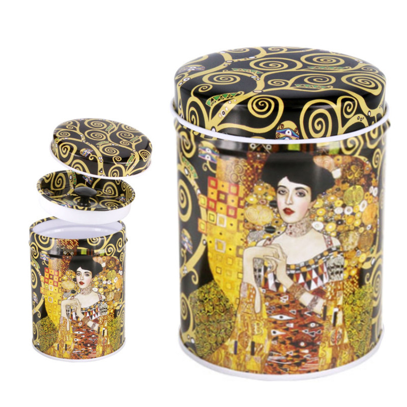 Бляшана банка для зберігання чаю та інших сипучих продуктів. Прикрасить вашу кухню гарною репродукцією картин Г. Клімта. До того ж кришка виконана також із жерсті, щільно закривається, що допоможе захистити продукти від потрапляння всередину вологи та сторонніх запахів.