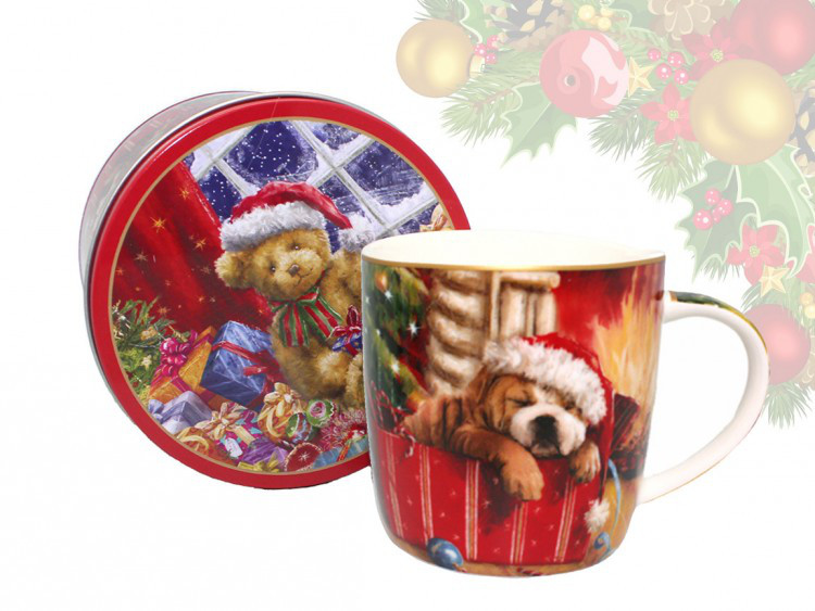 Кружка фарфорова Carmani з новорічним малюнком в металевій коробці Happy new year, h-9 см, 375 мл (880-9044.3)