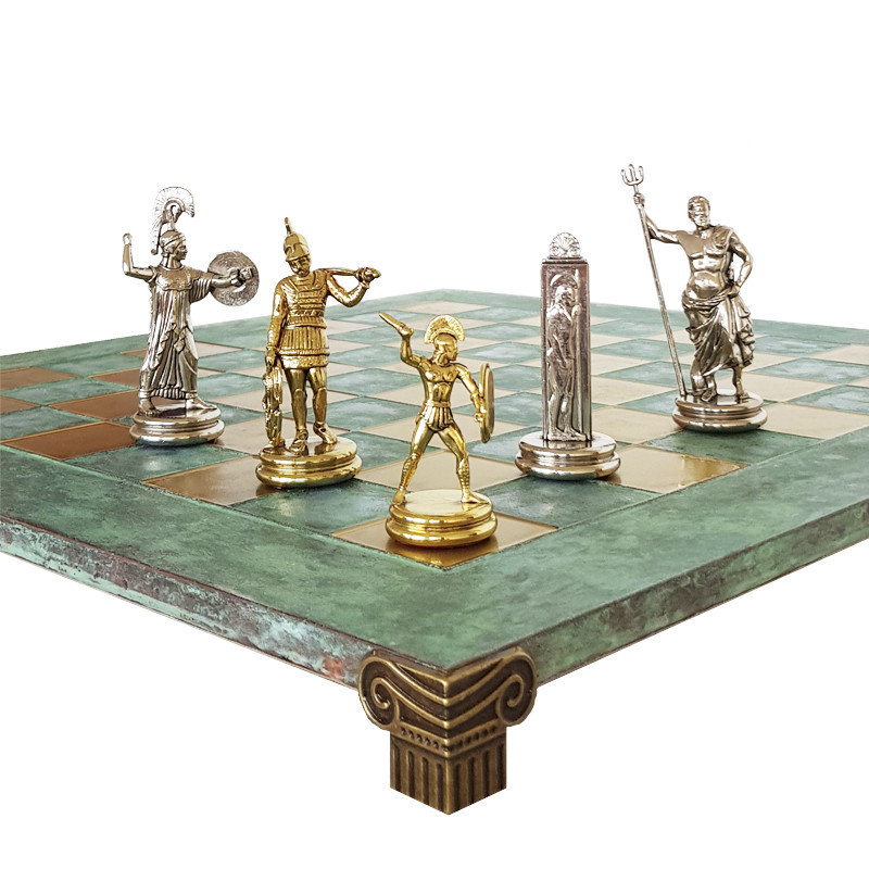 Компанія MANOPOULOS з 1970 р. спеціалізується на виробництві шахів і нард. Ці комплекти виконані в дусі історичного дизайну (міфи Стародавньої Еллади, важливі історичні моменти) і є подарунком, який зберігає функції гри. Вся продукція відповідає Європейським стандартам, має паспорт і є прекрасним чоловічим подарунком на День Народження, Новий рік або Дня Валентина. Дошка виконана з листа високоякісної бронзи з нанесенням спеціального покриття з гальванопластика коричневого кольору. Розмір дошки 55х55 см. Фігури для гри - металеві, покриті під золото і срібло.
