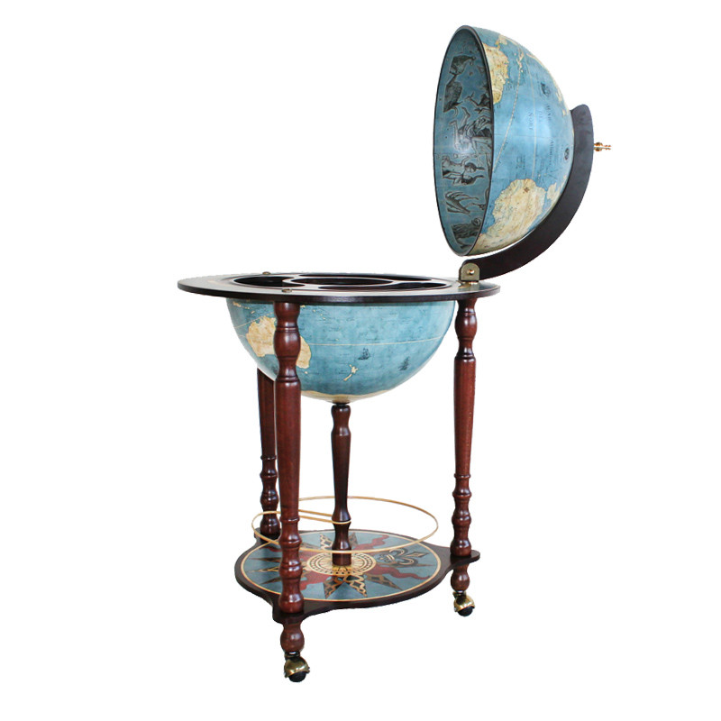 Глобус бар — це стильна, вишукана і функціональна річ. Він чудово підходить не тільки для зберігання спиртних напоїв, але і стане прекрасним доповненням до Вашого інтер'єру. На сфері карта 18-го століття. У барі можна розмістити 2 пляшки і до 9 склянок. Мінімум деталей і бездоганний стиль, ручна робота і престиж марки - ось що відрізняє італійські глобуси Zoffoli від інших.